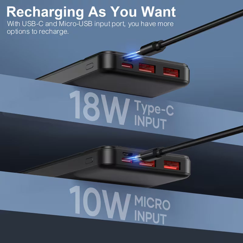 Portable Charger Power Bank 10000mAh, PD 22.5W Battery Pack, Slim Design, 3 Outputs, 2 Input.